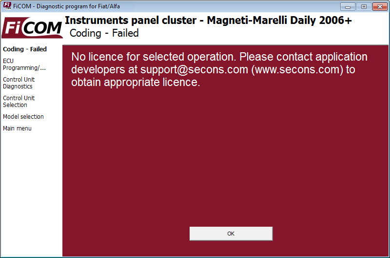 V případě chybějící licence pro provedení změny počítadla kilometrů nás prosím kontaktujte na [email protected]